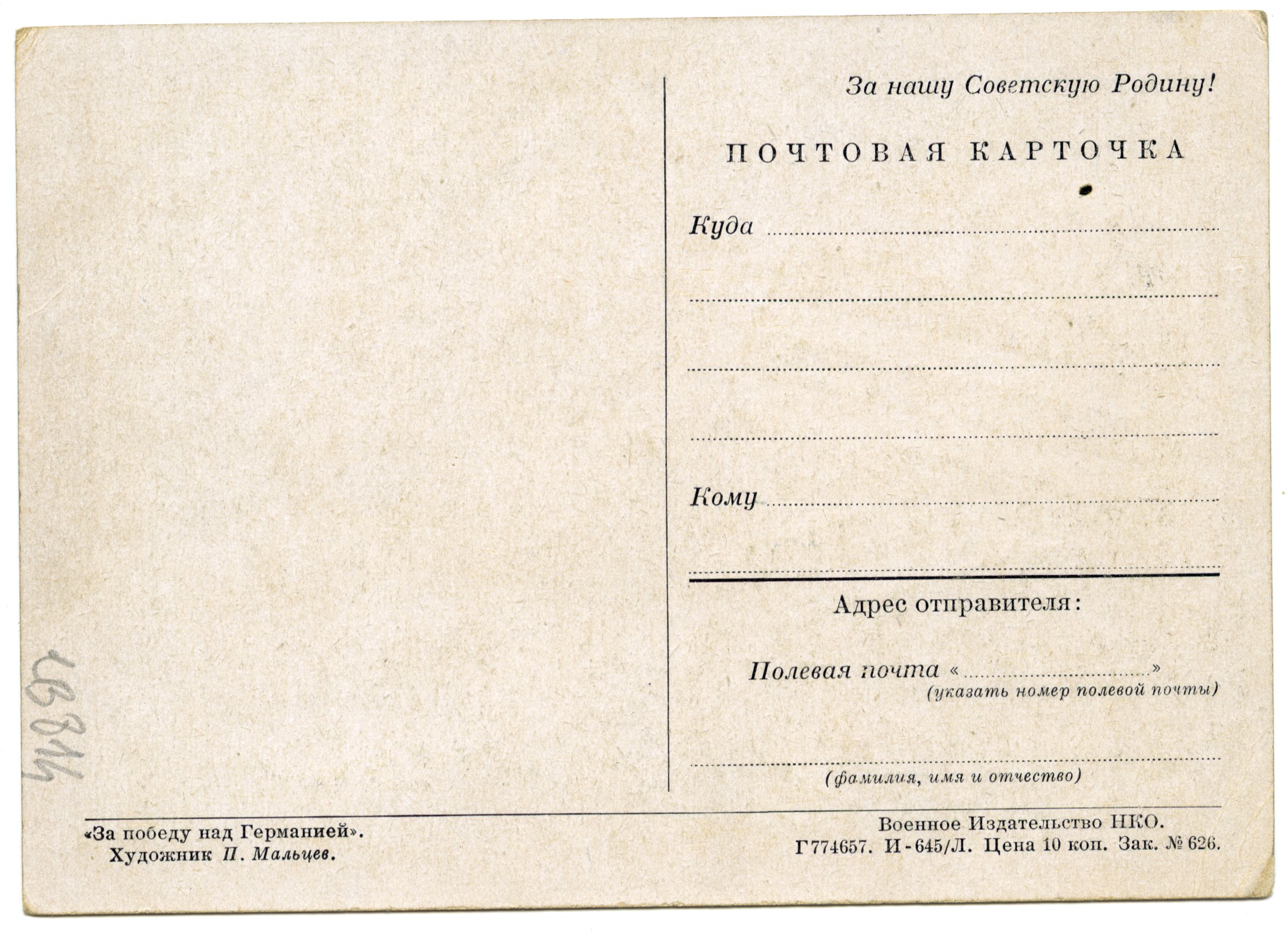 • Mal'cev, P., Per la vittoria sulla Germania nella Grande Guerra Patriottica 1941-1945 / За победу над Германией в великой отечественной войне 1941 - 1945 гг., Voennoe Izd. NKO , 1945.