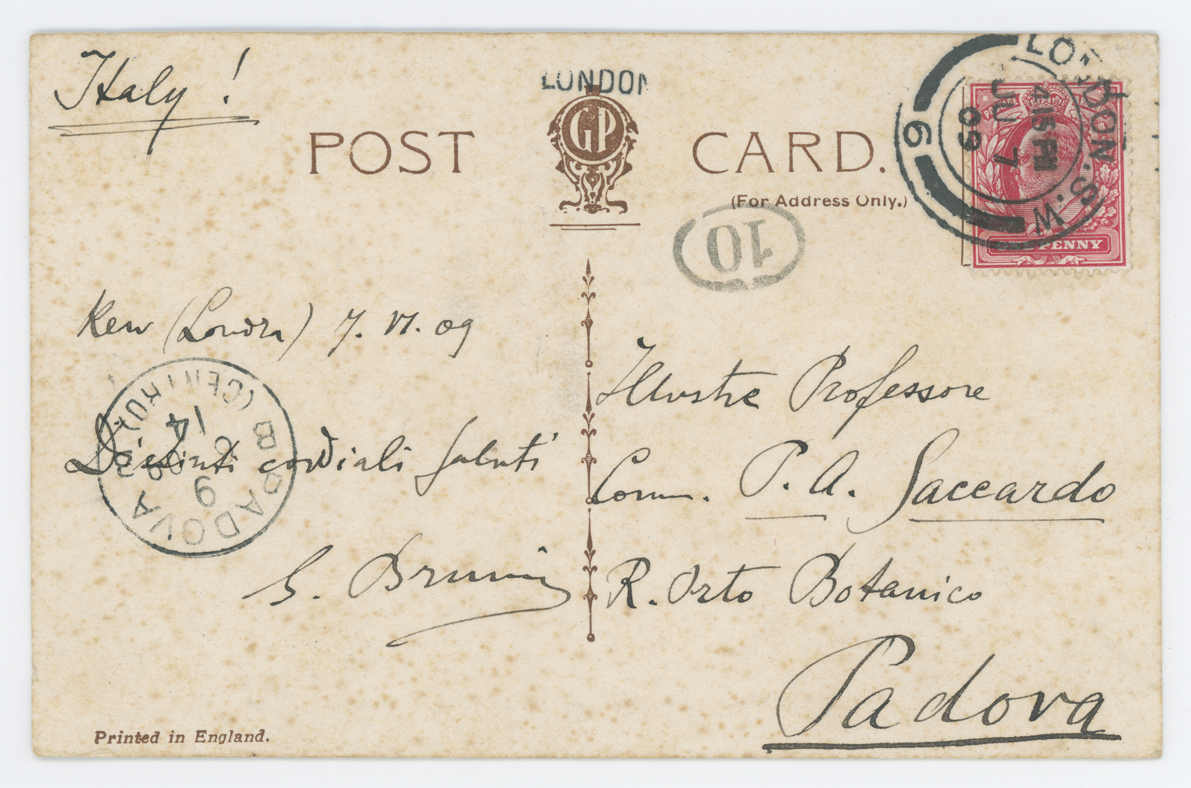 1 cartolina: ; 89 x 138 mm.
