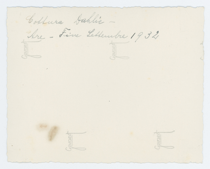 Nota ms sul v.: Coltura Dahlie – Are – Fine settembre 1932.