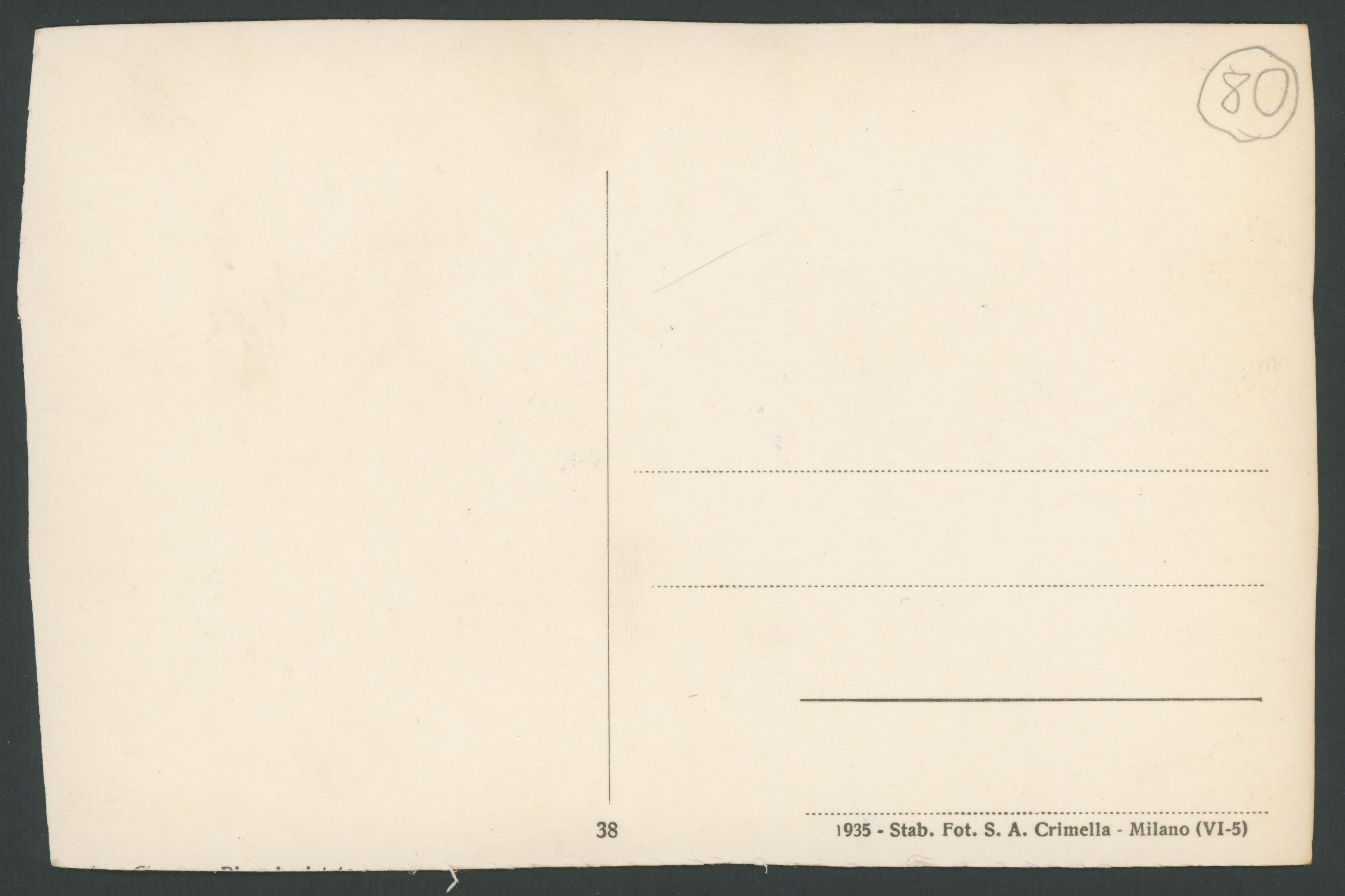 Testo stampato sul verso: 38; 1935 - Stab. Fot S. A. Crimella - Milano (VI-5)