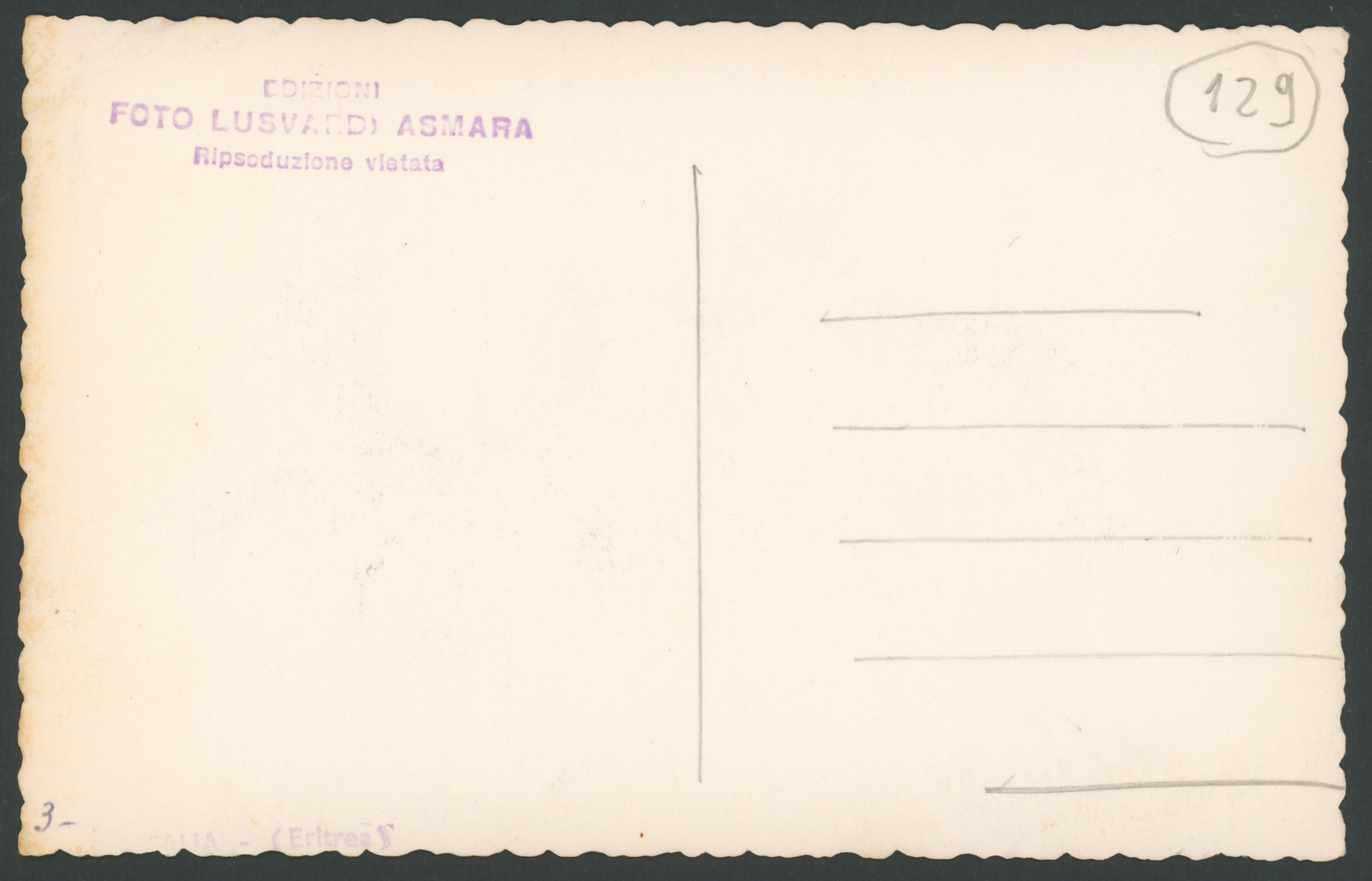 TImbri sul verso: Edizioni Foto Lusvardi Asmara Ripsoduzione [i.e. riproduzione] vietata; [Mass]aua - (Eritrea)