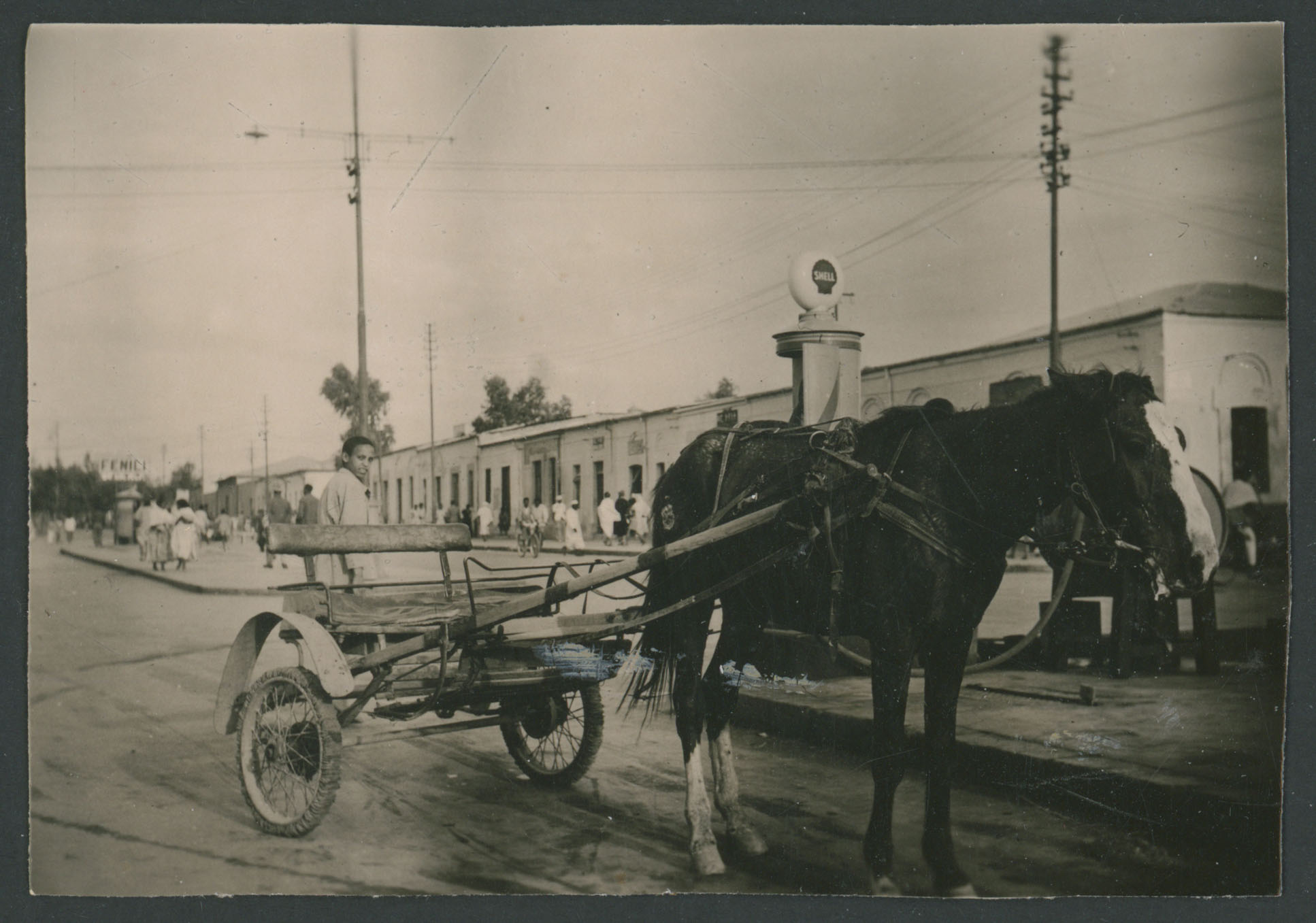 Carro trainato da un cavallo davanti ad una stazione Shell ad Asmara in Eritrea
