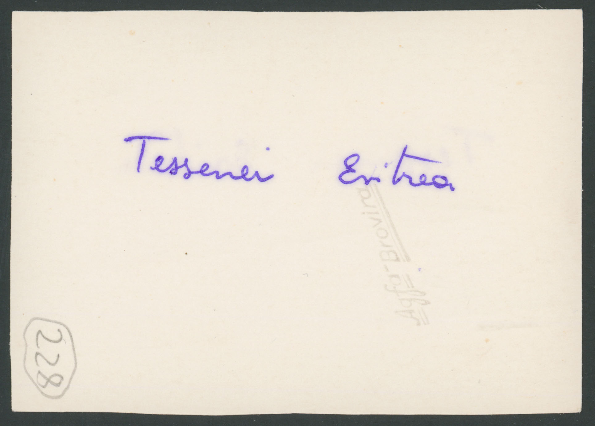 Nota manoscritta sul verso: Tessenei Eritrea