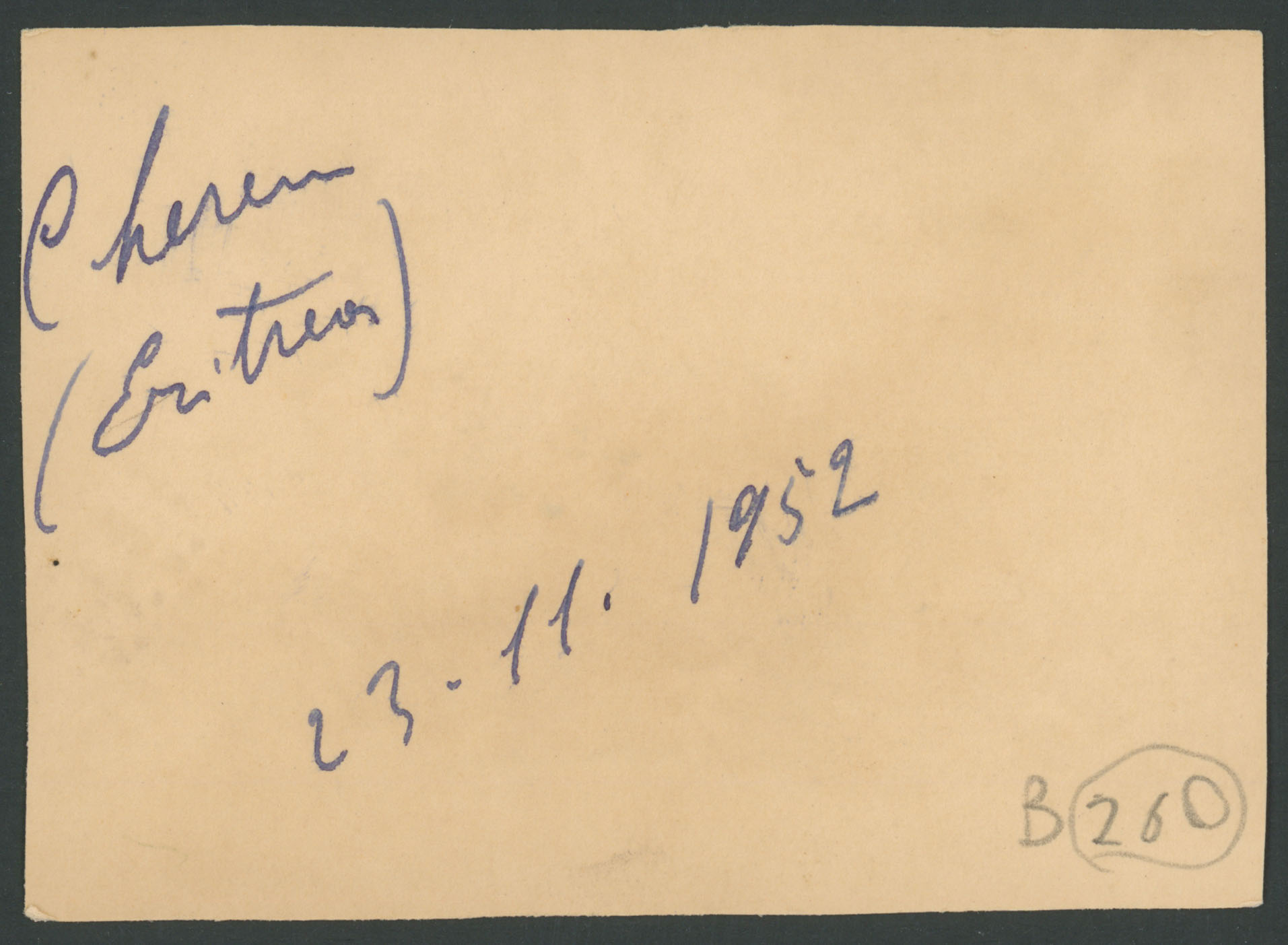 Nota manoscritta sul verso: Cheren (Eritrea); 23-11-1952