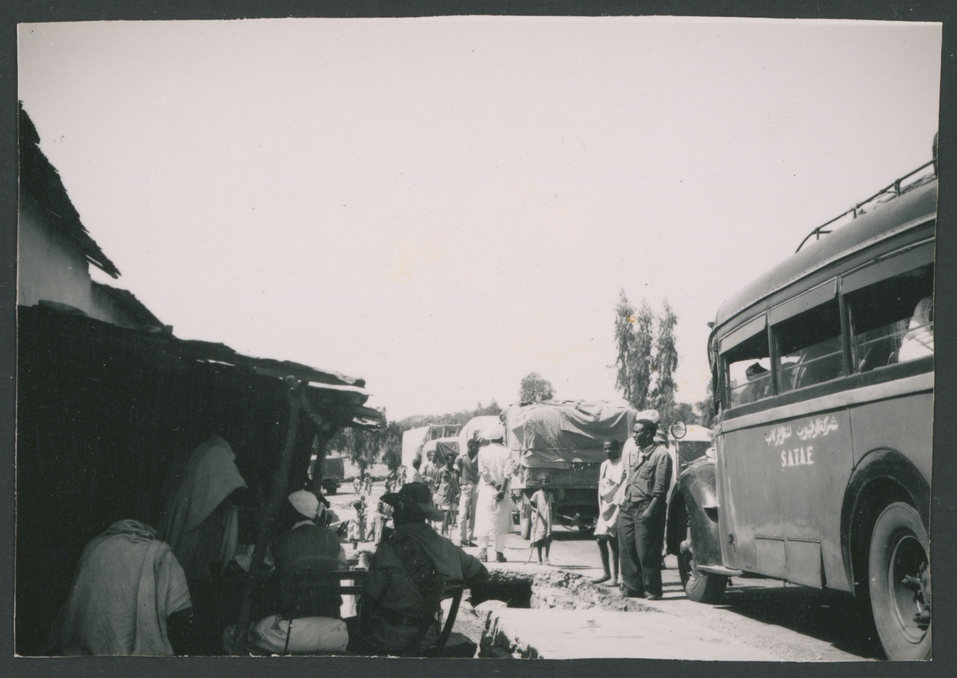Autocarri e persone lungo una strada di Adi Ugri in Eritrea