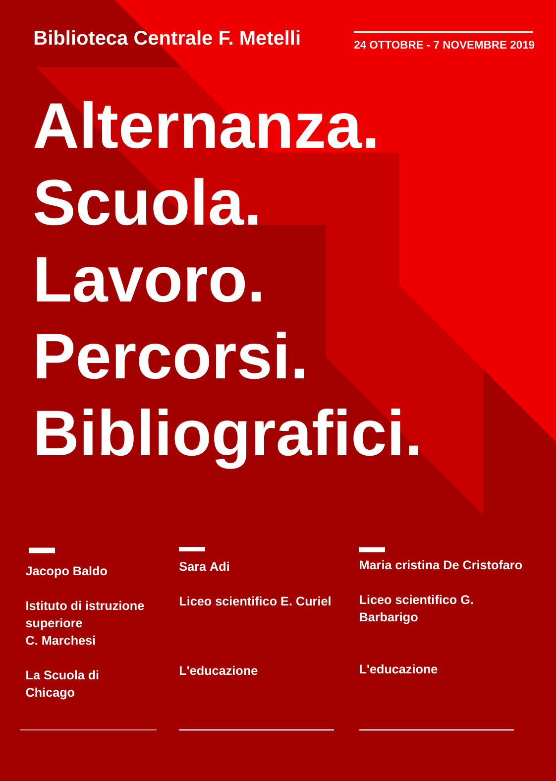Manifesto promozionale realizzato all'interno del percorso di Alternanza scuola-lavoro del 2019. La collezione comprende sia il materiale prodotto dalla biblioteca sia quello realizzato dagli studenti ospitati all'interno del progetto