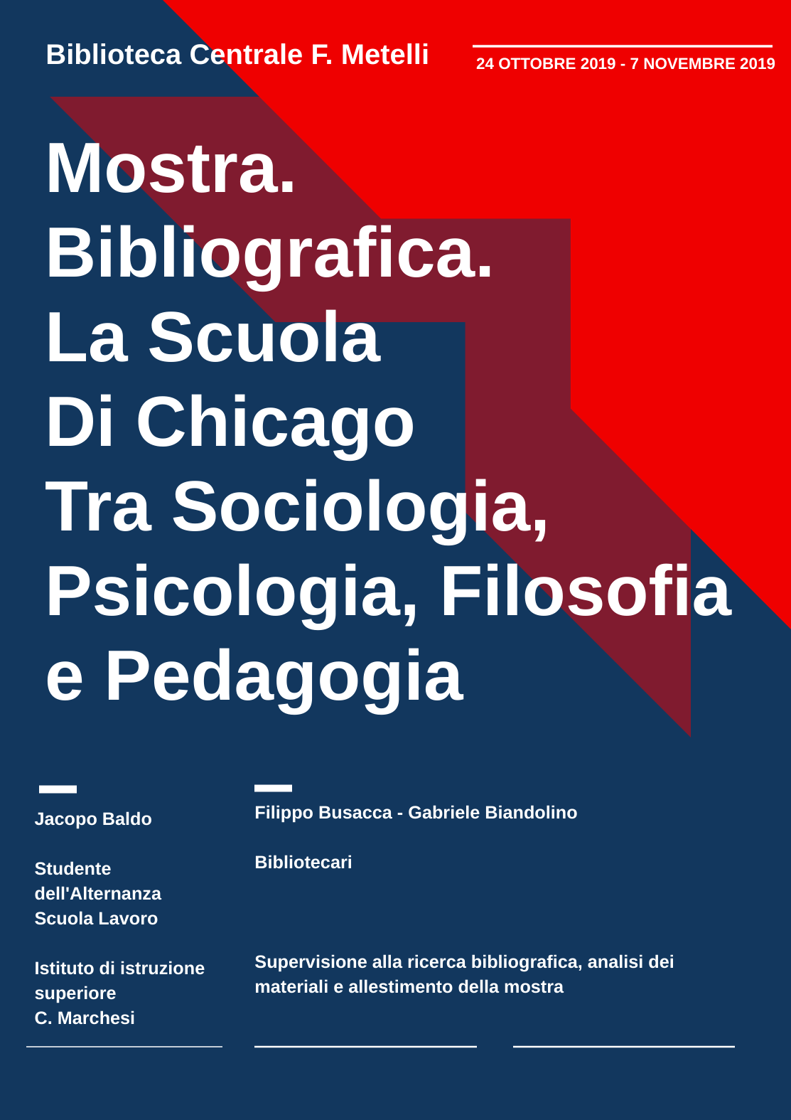 Manifesto della mostra bibliografica "La Scuola di Chicago"