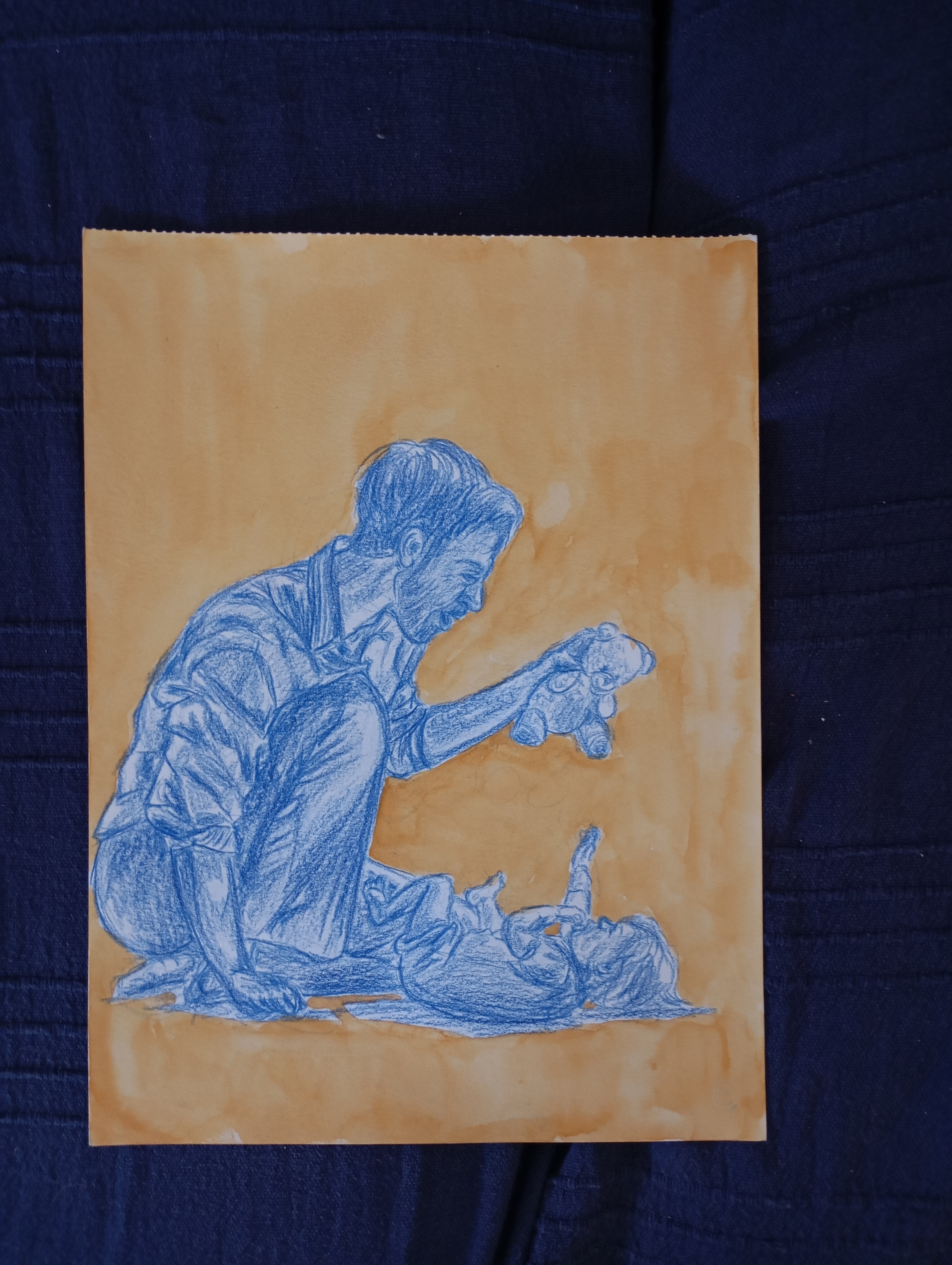 Fotografia di un disegno dell'esposizione "Ritratti di famiglia" : giocando con papà