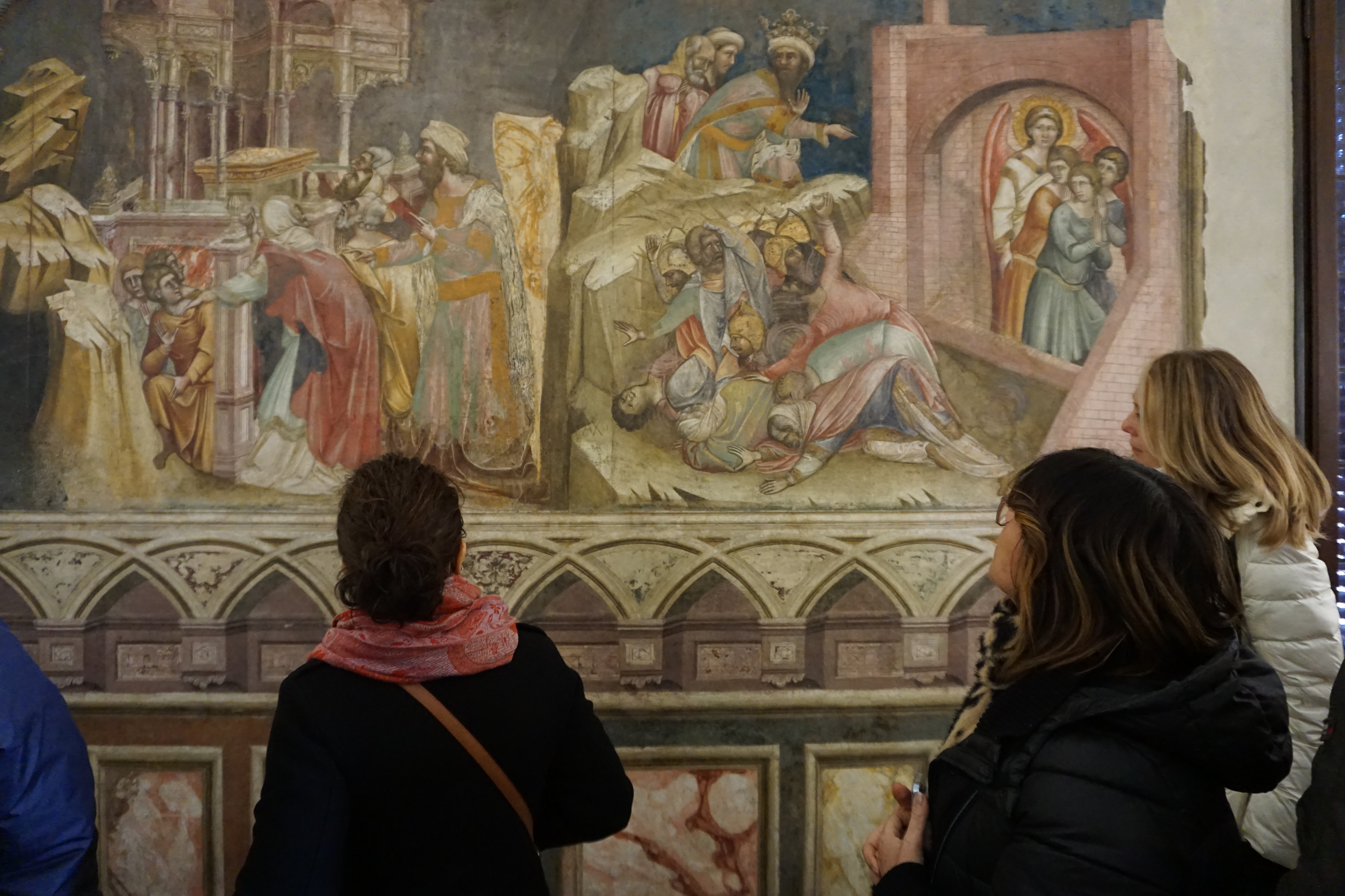 Al termine della conferenza "Le immagini del potere, il potere delle immagini: gli affreschi di Guariento nella Reggia Carrarese, patrimonio dell’umanità", la professoressa Zuleika Murat ha guidato i partecipanti nelle sale affrescate della Cappella della Reggia dei Carraresi, presso l’Accademia Galileiana, per una dettagliata analisi degli affreschi del Guariento (sabato 21 gennaio 2023).