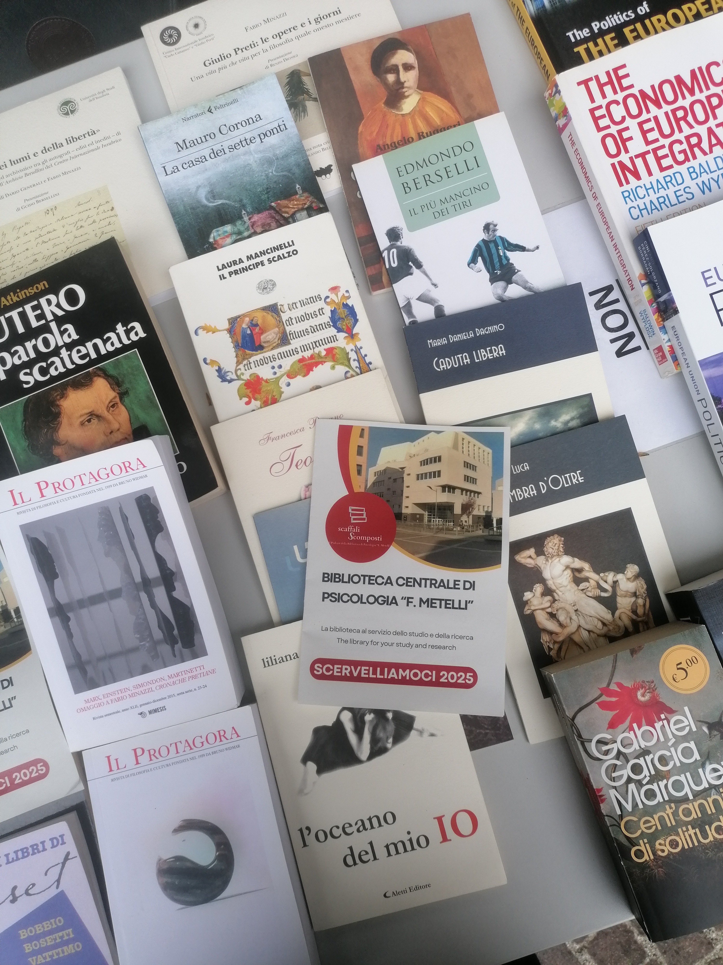 Immagine dei libri del Bookcrossing portati all'evento Scervelliamoci 2025