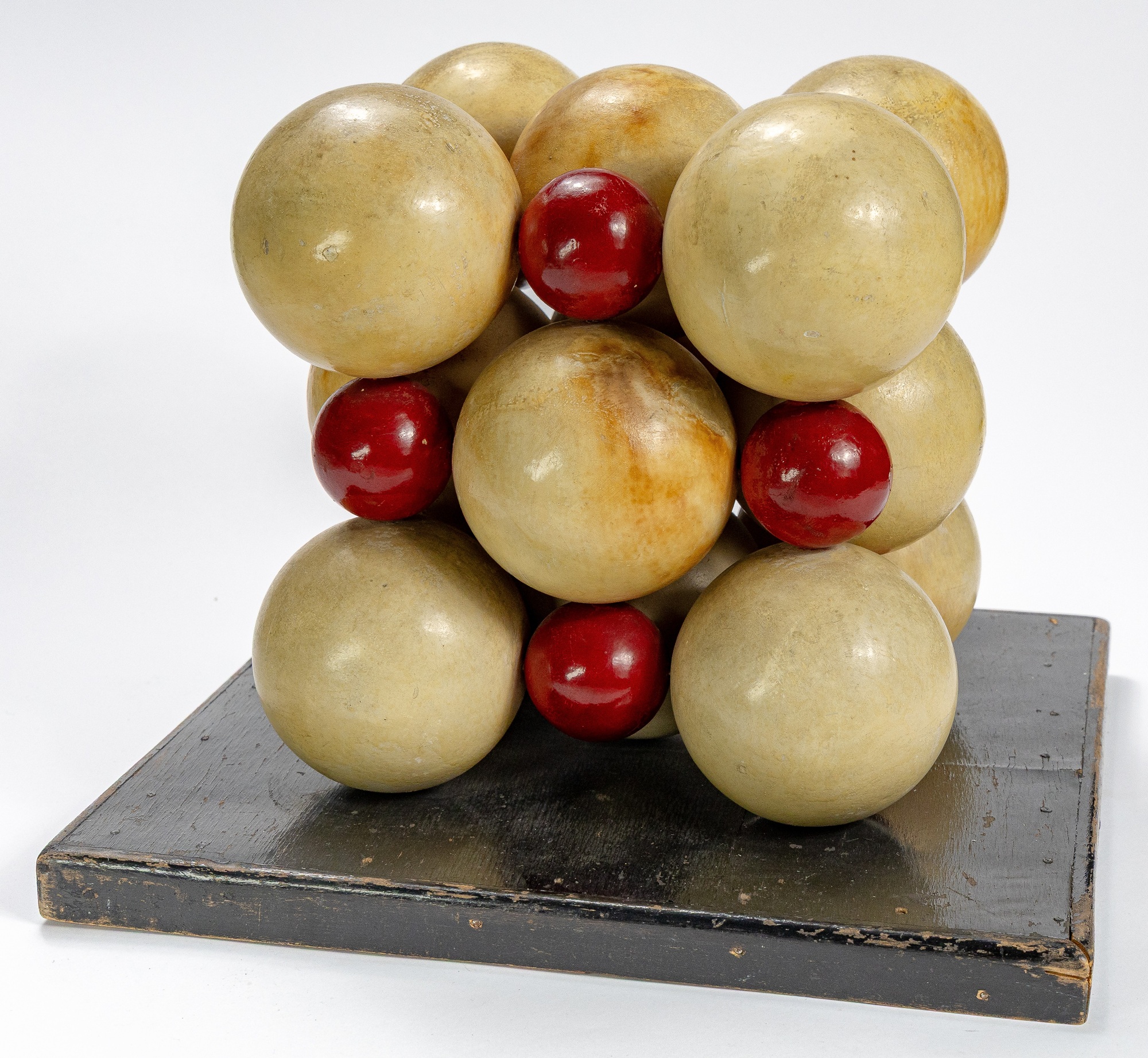 Detto “a calotta”, questo tipo di modello fu introdotto negli anni 1950. Pone l’accento sulla forma e le dimensioni relative della molecola. Il raggio delle sfere è di fatto proporzionale al raggio degli atomi. Raggi atomici e distanza tra nuclei atomici sono riportati nella stessa scala. Il sistema cubico è il sistema a più alto grado di simmetria. La struttura esposta è caratterizzata da un impacchettamento molto compatto di atomi. Si tratta di una struttura di tipo NaCl (cloruro di sodio) con gli ioni Cl– più grandi a formare un reticolo a facce centrate e gli ioni Na+ più piccoli a occupare gli interstizi ottaedrici.