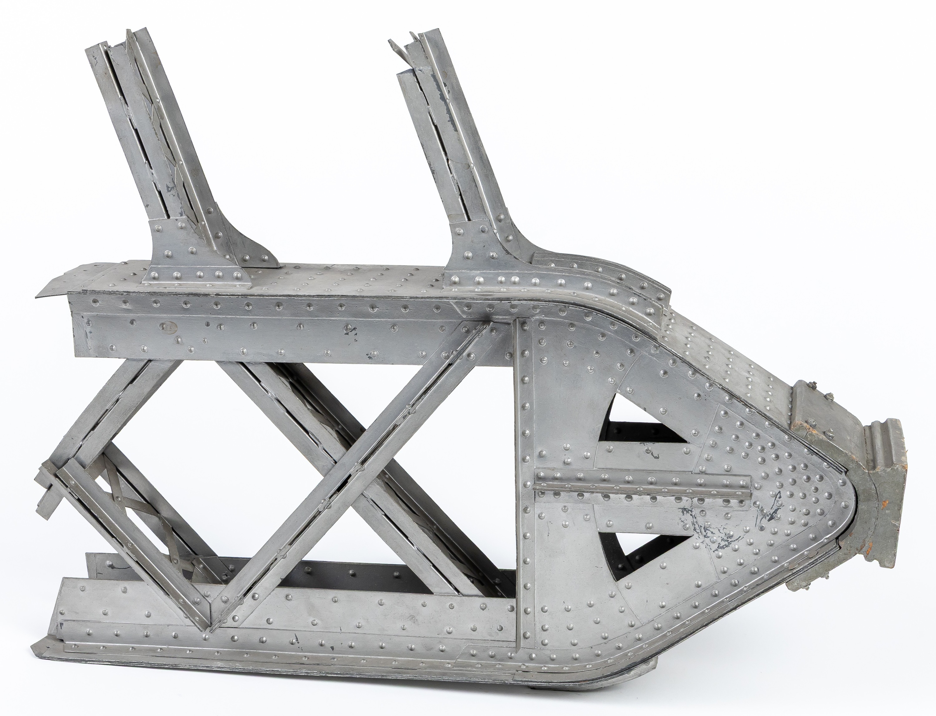 Il modello riproduce il particolare della cerniera di appoggio del ponte sul Reno a Koblenz- Horchheim (Germania). Il ponte, a due arcate di 106 metri di lunghezza, venne progettato dagli ingegneri tedeschi M. M. Altenloh e J. Zimmermann negli anni 1876-79. Il ponte, che serviva alla linea ferroviaria Berlino- Metz, fu quasi completamente distrutto dalle unità della Wehrmacht in ritirata alla fine della seconda guerra mondiale. La vista posteriore del modello illustra l’appoggio delle aste superiori e inferiori. È inoltre evidenziato l’andamento dei puntoni a partire dalle aste verticali. La vista laterale evidenzia invece l’andamento delle aste diagonali tese e compresse.