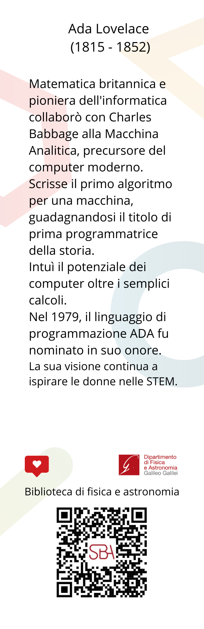 Si mette in evidenza il contributo innovativo di Ada Lovelace, pioniera dell’informatica, tra le più significative scienziate del passato.