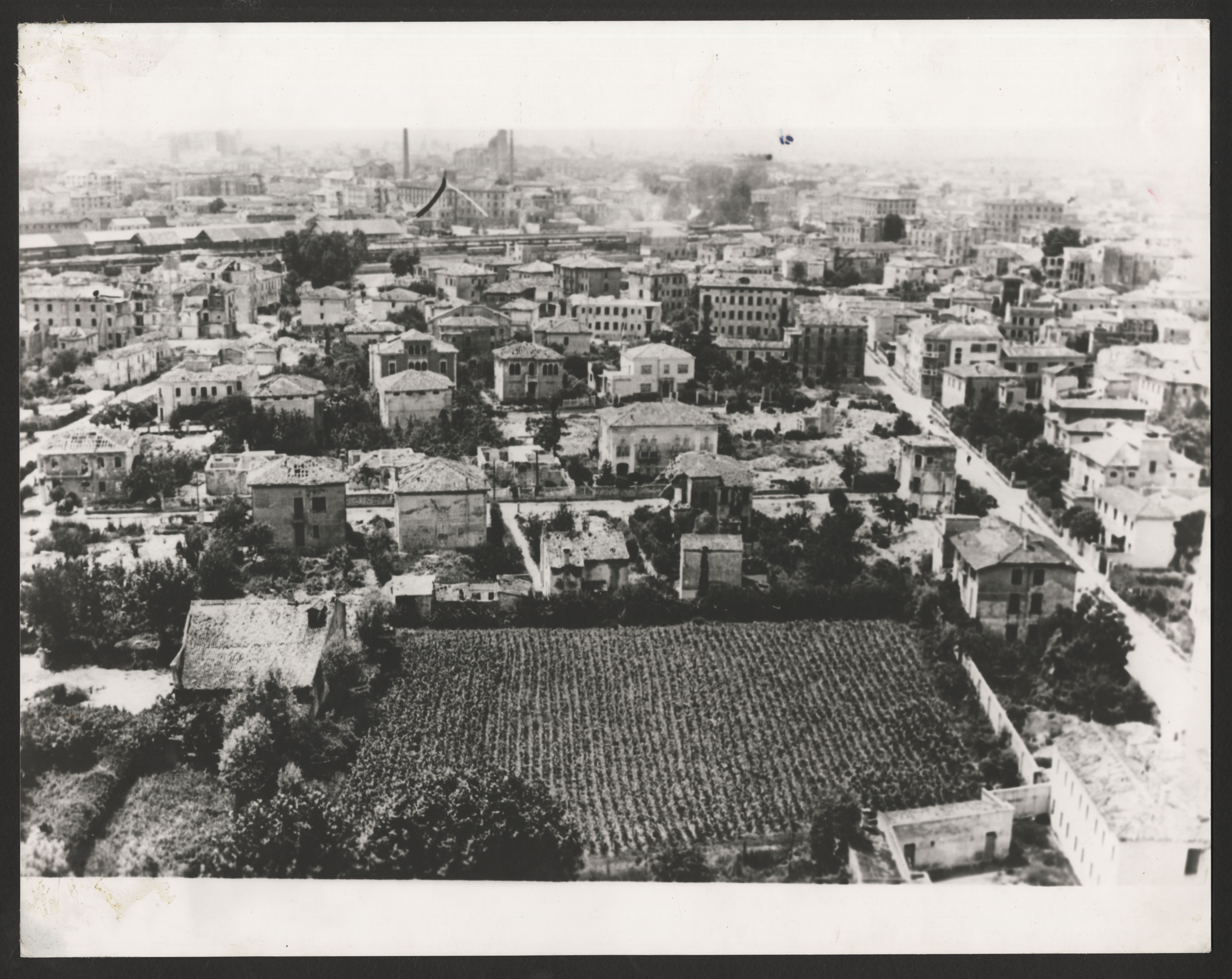 Vista aerea di via Stefano dall'Arzere, all'Arcella, dopo il primo bombardamento