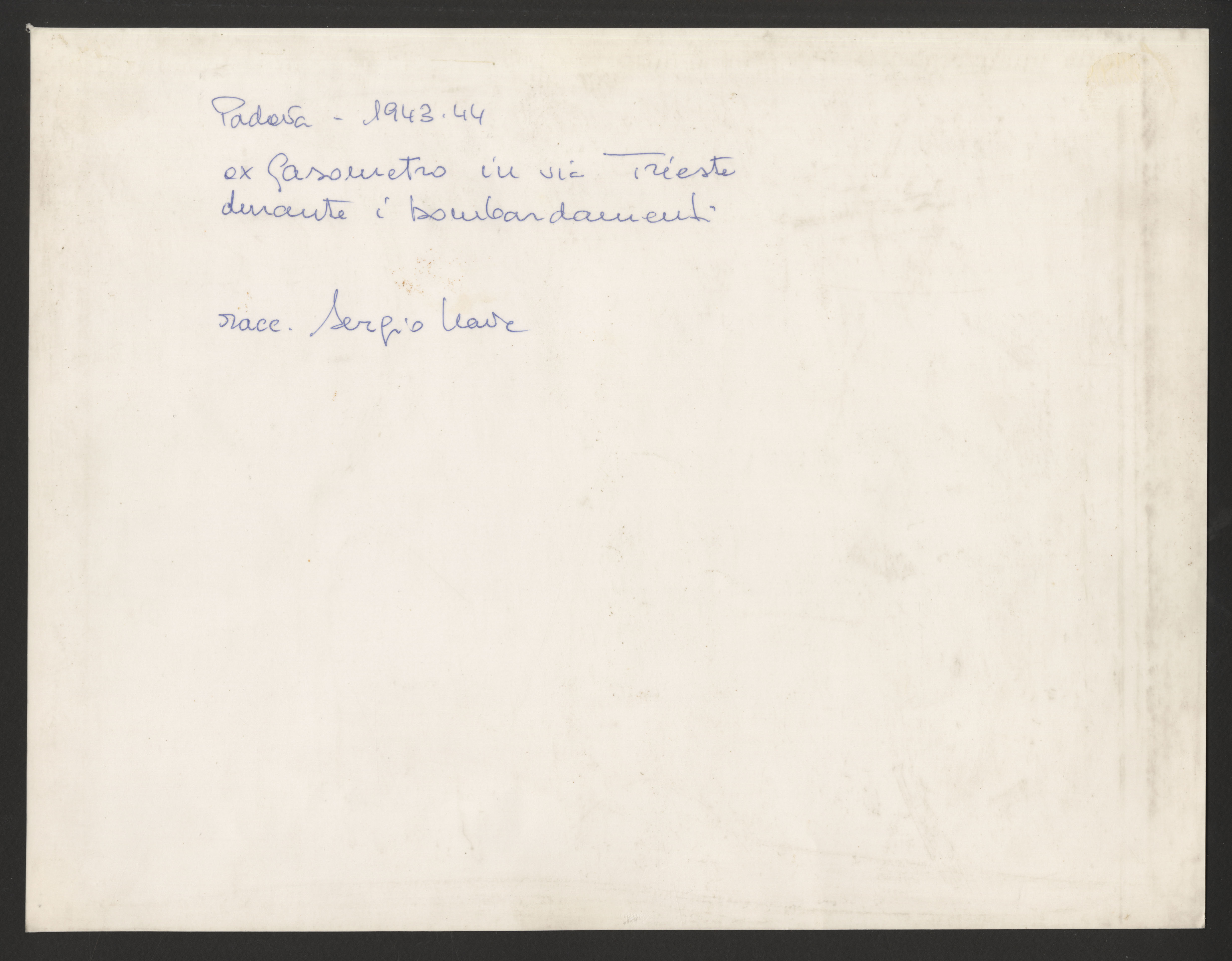 Annotazione manoscritta sul verso: "Padova - 1943-45. ex Gasometro in via Trieste durante i bombardamenti. racc. Sergio Nave".