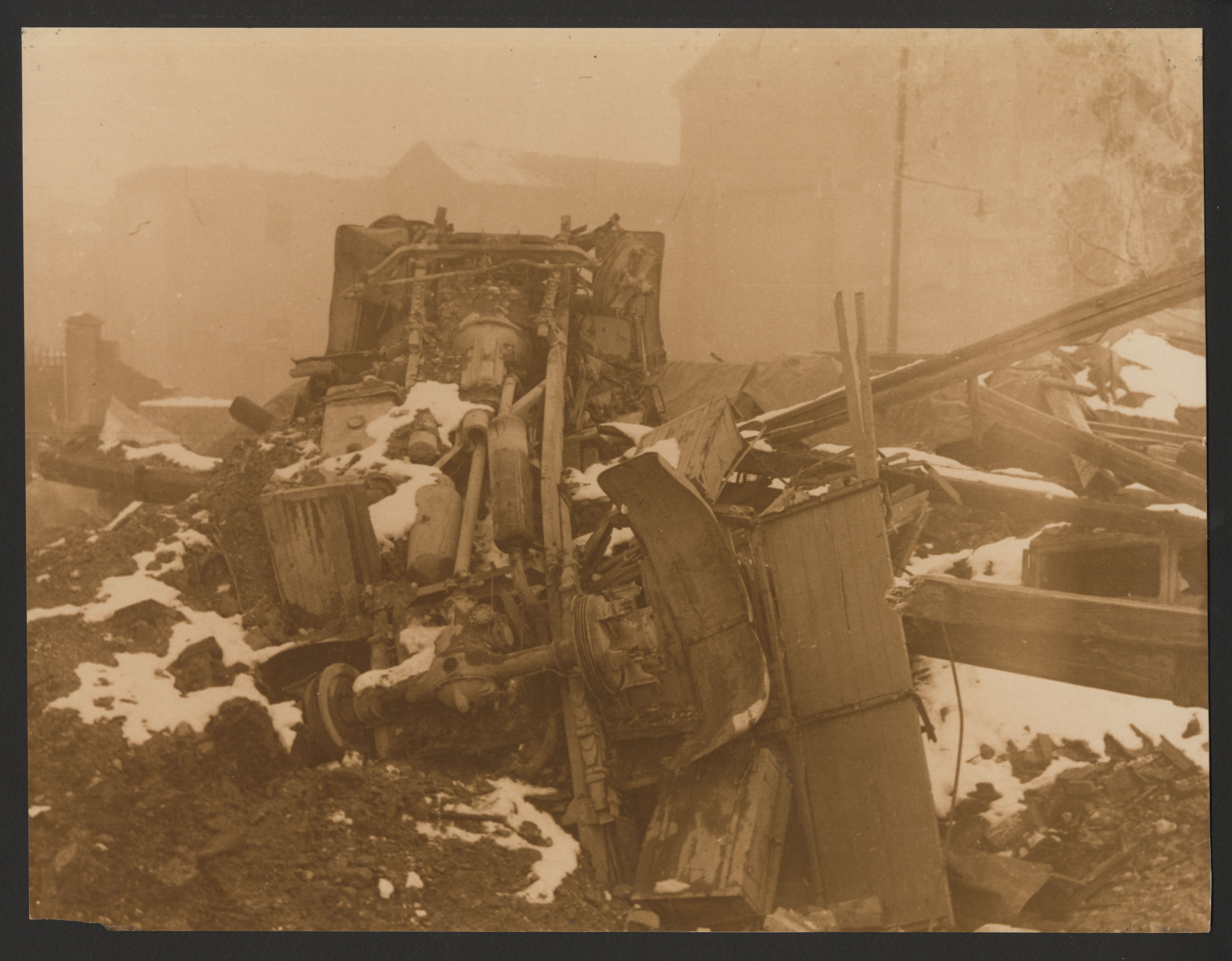 Macerie della ex-concessionaria OM in zona industriale di via Gozzi, nei pressi della Stazione di Padova, danneggiata dai bombardamenti nell'inverno 1943/44