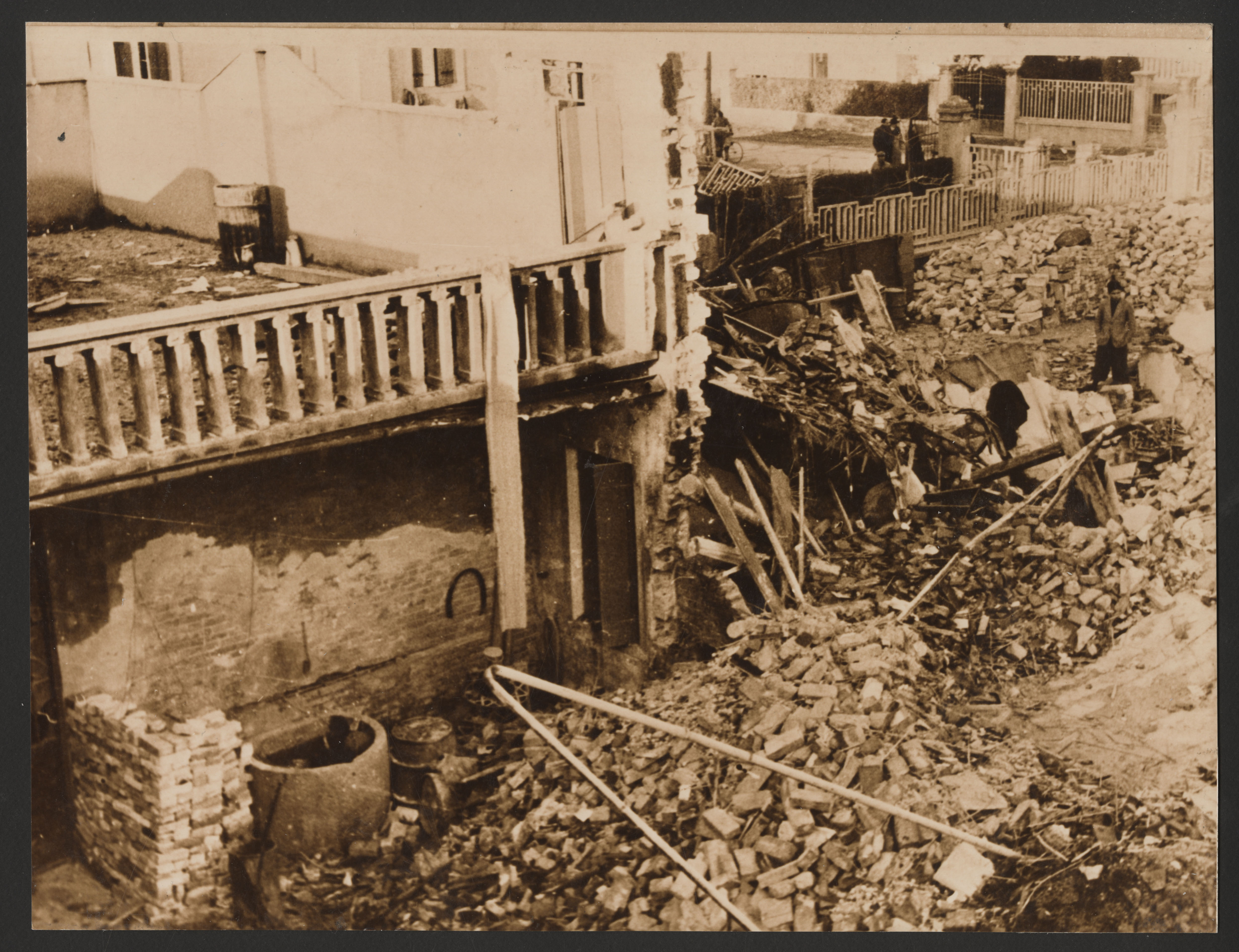 Annotazione manoscritta sul verso: "Padova -16.XII.43 - Borgomagno[.] Ex distilleria L. Bortolazzi (attuale area Mazzonello)[.] Palazzina uffici dopo il I° bombardamento. racc. Sergio Nave".
