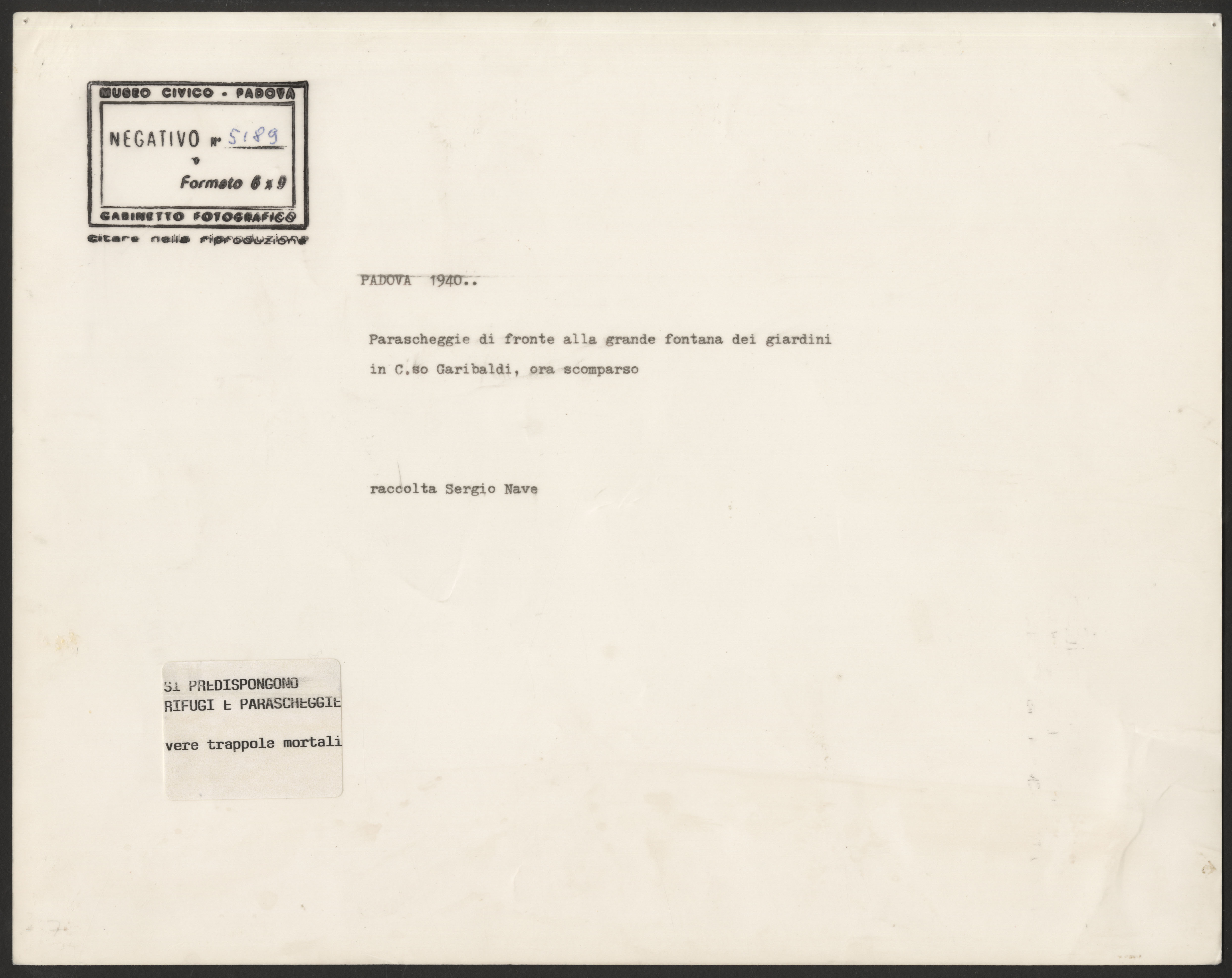 Timbro sul verso: "Museo Civico Padova. Negativo n. 5189 - Formato 6x9. Gabinetto fotografico. Citare nella riproduzione".