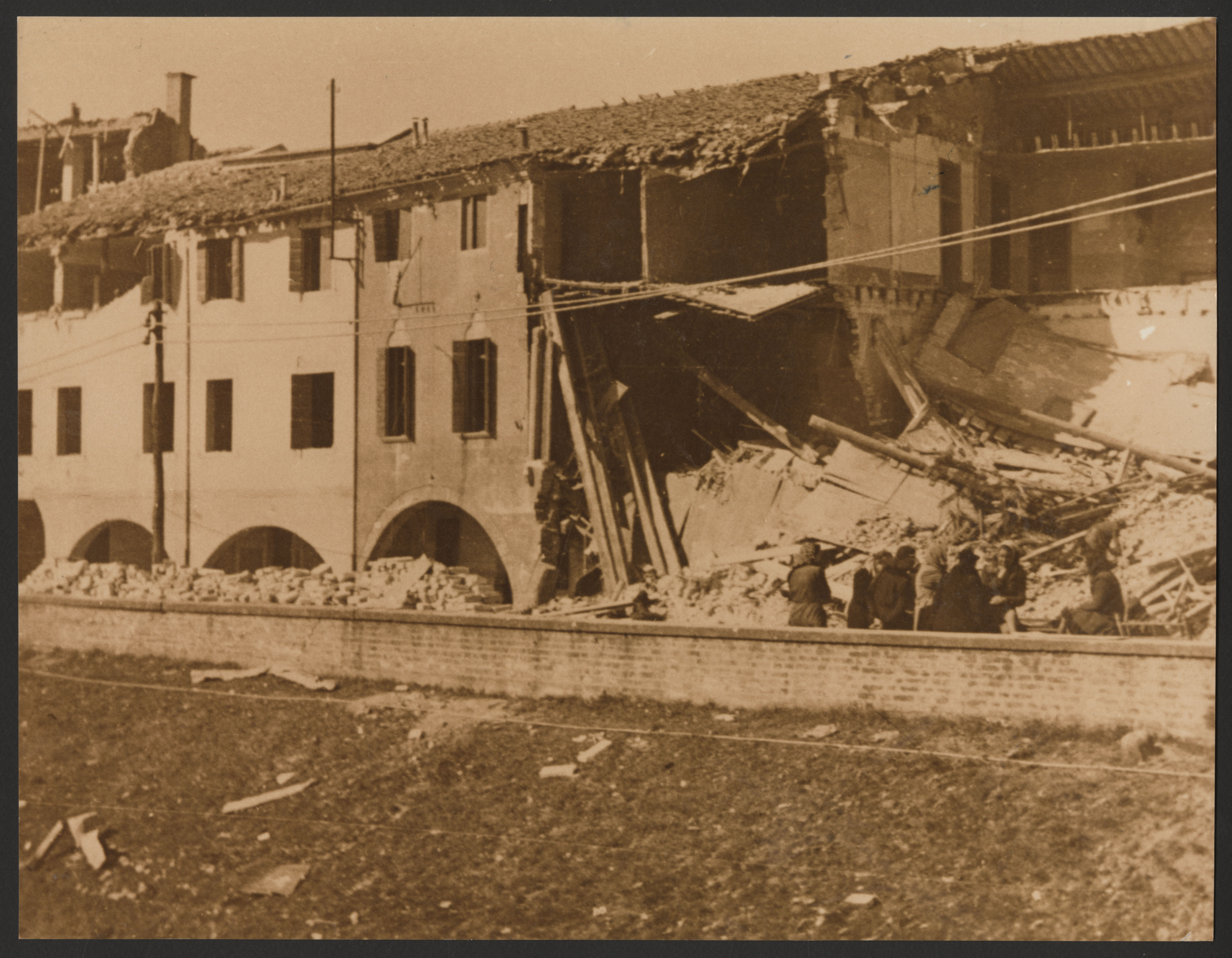 Annotazione manoscritta sul verso: "Padova 11.03.44 IV° bombardamento. Riviera Paleocapa. racc. Sergio Nave".