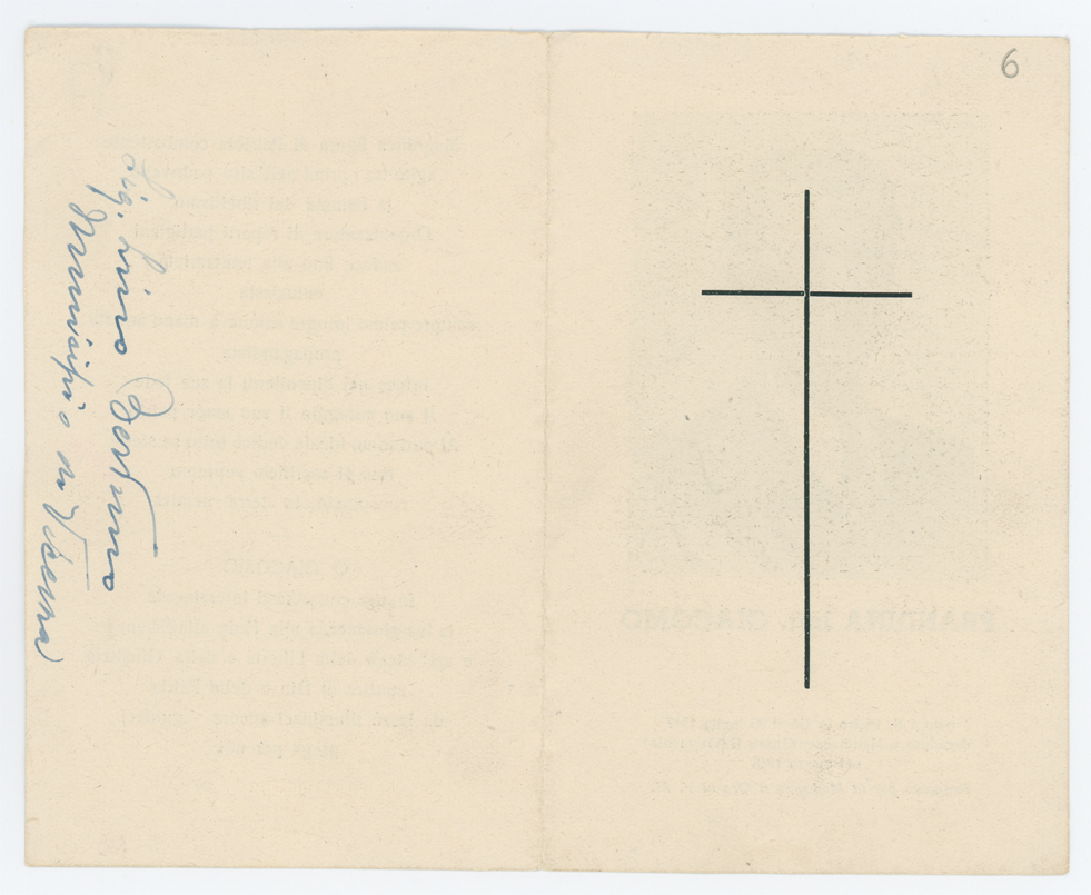 Ricordo funebre di Giacomo Prandina - recto