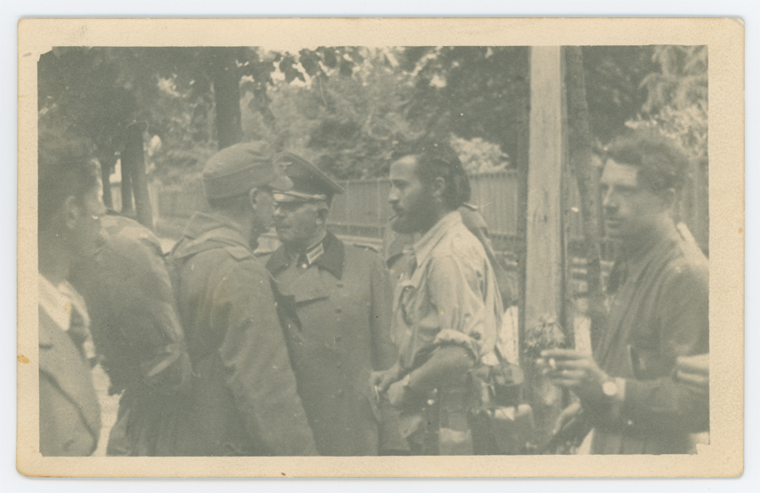 Vittorio Veneto (Treviso), 30 aprile 1945. Il generale Jürgen von Kamptz, sorvegliato da un gruppo di partigiani della brigata “Cairoli”, in attesa di essere consegnato agli Alleati.