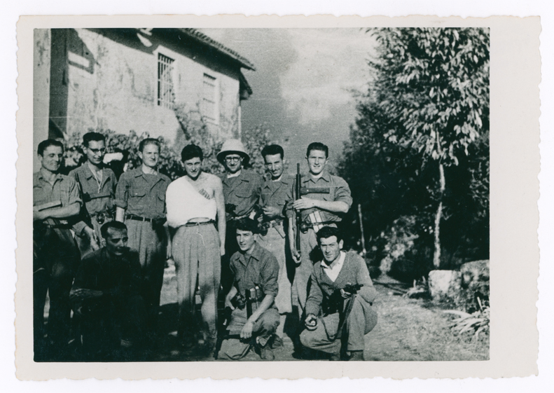 Gruppo di partigiani sui Colli Berici. Il secondo da destra nella seconda fila è Giacomo Chilesotti “Nettuno”, il quinto è Albino Chiumento “Bill”.