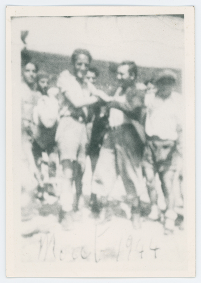 Fotografia di prigionieri partigiani liberati dalle carceri di Belluno nel giugno 1944, in seguito rientrati a Mont (Belluno) [nota sul retro].