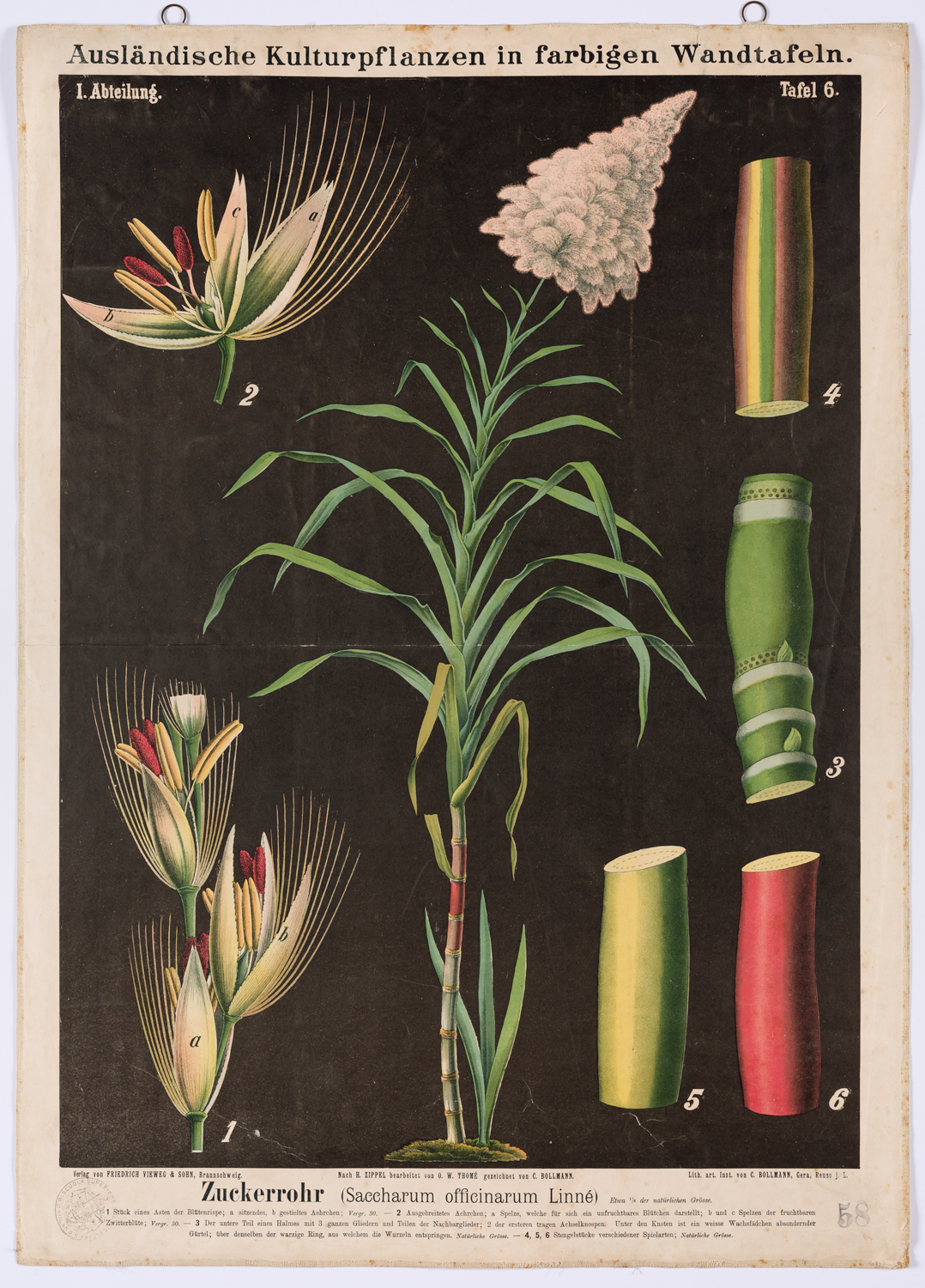 Ausländische Kulturpflanzen in farbigen Wandtafeln. Abteilung I. tafel 6. La tavola contiene la pianta intera, particolari dei fiori e alcuni segmenti di caule