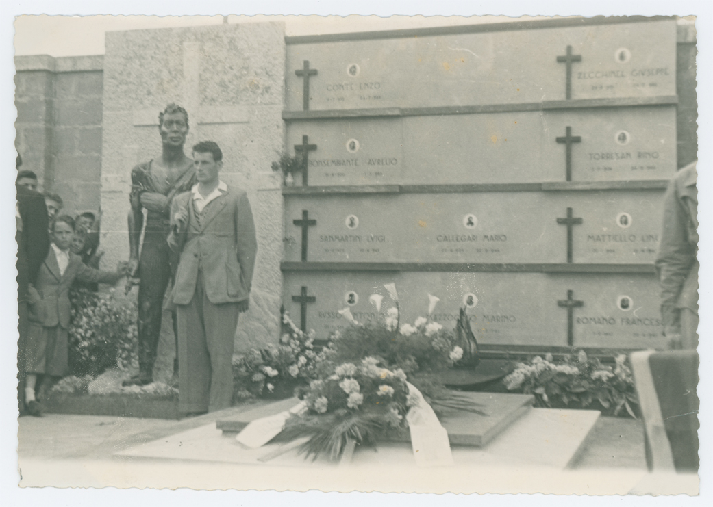 Fotografia delle solenni onoranze tenutesi a Montebelluna (Treviso) per commemorare i caduti partigiani.