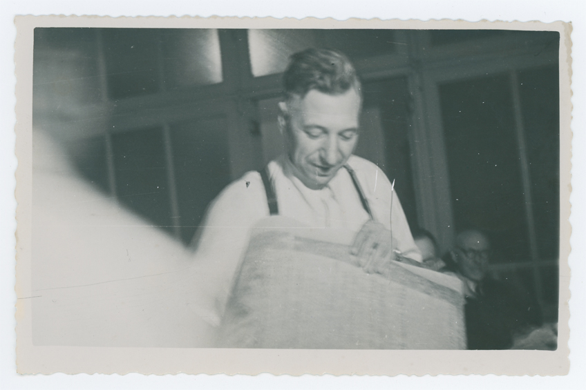 Fotografia della cerimonia di consegna di una pergamena ricordo offerta a Romolo Pellizzari, Presidente del C.L.N. di Montebelluna dal 10 settembre 1943 al 29 giugno 1946.