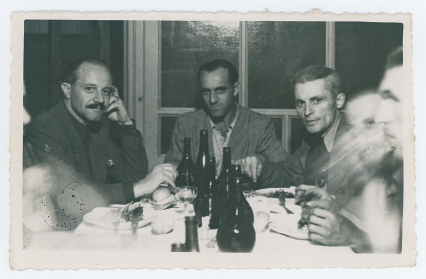 Fotografia dei festeggiamenti in occasione della cerimonia di consegna di una pergamena ricordo a Romolo Pellizzari, Presidente del C.L.N. di Montebelluna dal 10 settembre 1943 al 29 giugno 1946.