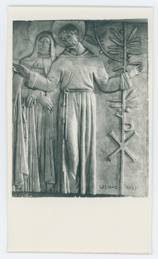 Fotografia relativa alla cerimonia di inaugurazione del monumento ai partigiani caduti della Brigata "Cesare Battisti" eretto a Castelfranco Veneto (Treviso). Particolare di un rilievo fatto da Gaetano Rossi.