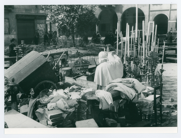 Fotografia del sagrato della Chiesa del Carmine a Padova dopo il bombardamento del 23 marzo 1944.