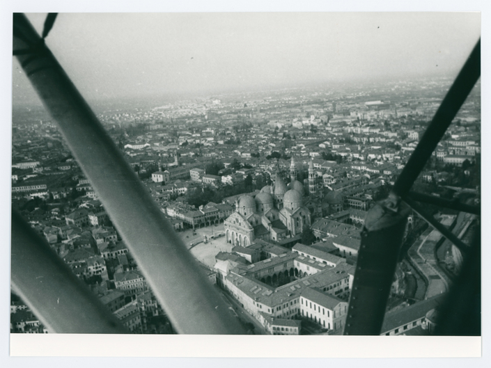 Fotografia della Basilica di Sant'Antonio a Padova dopo un bombardamento, presa da un ricognitore tedesco