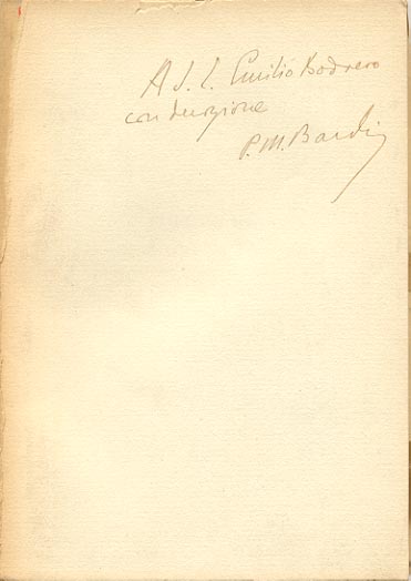 Dedica manoscritta dell’autore: A S. E. Emilio Bodrero / con devozione / P. M. Bardi.