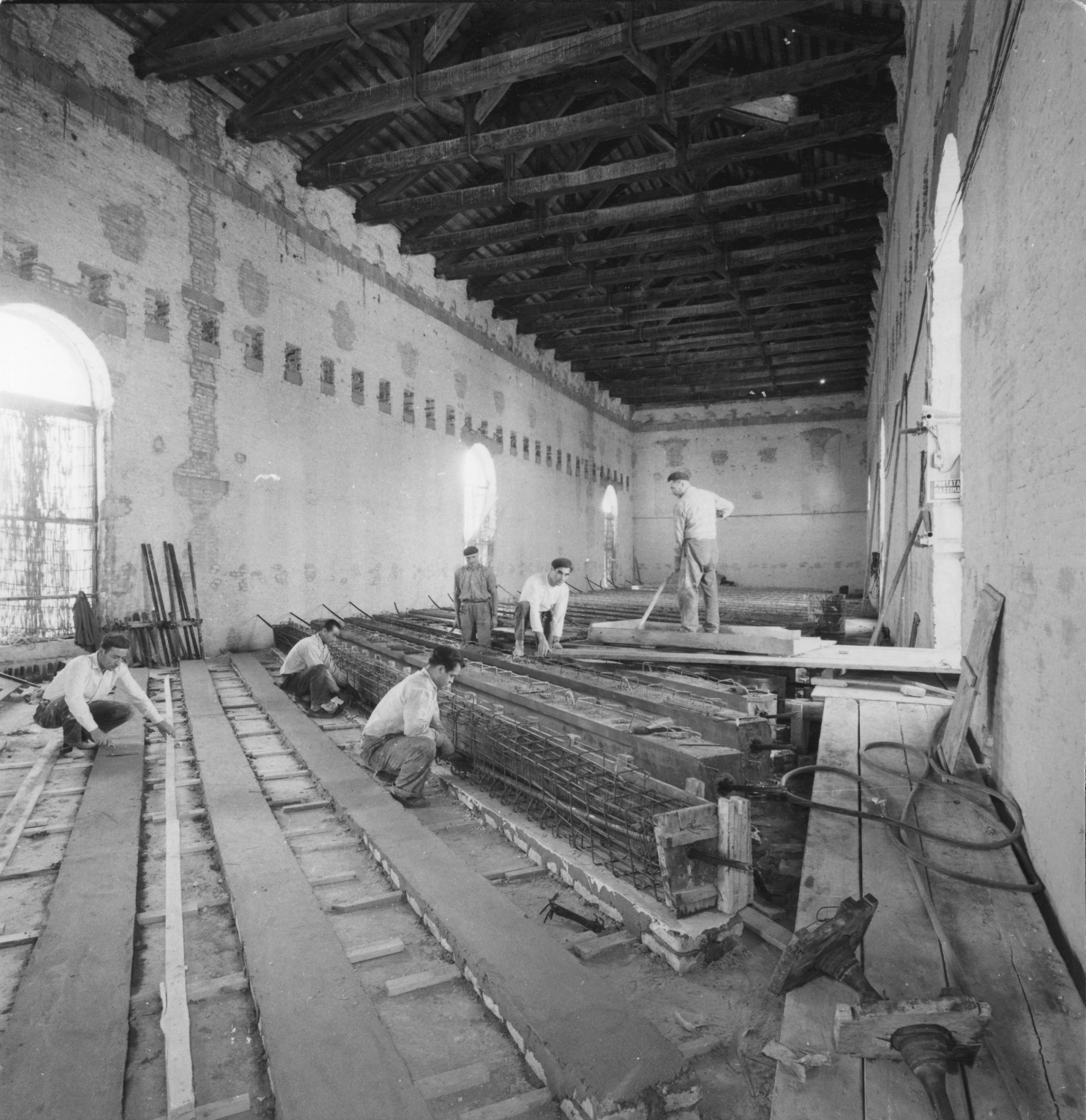 La realizzazione delle travi per il solaio superiore dell'ala del refettorio.