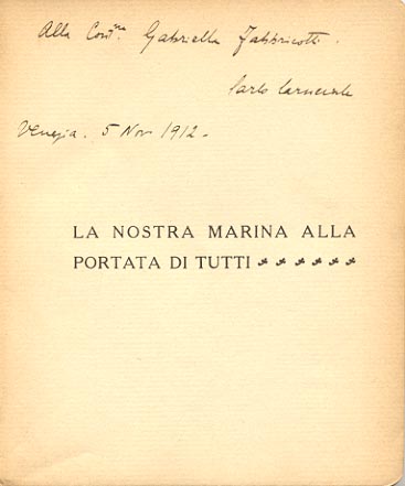 Dedica manoscritta dell'autore: Alla Cont.ssa Gabriella Fabbricotti / Carlo Carnevale / Venezia, 5 Nov. 1912