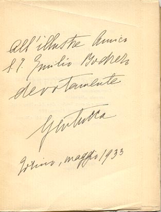 Dedica manoscritta dell'autore: All'illustre Amico / S. E. Emilio Bodrero / devotamente / Gentucca / Torino, maggio 1933