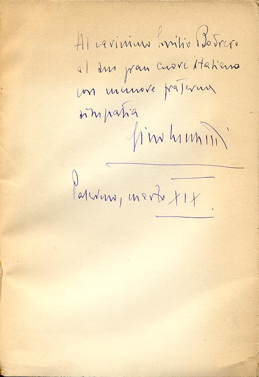 Dedica manoscritta dell'autore: Al carissimo Emilio Bodrero / al suo gran cuore italiano / con memore fraterna / simpatia / Gino Cucchetti / palermo , marzo XIX