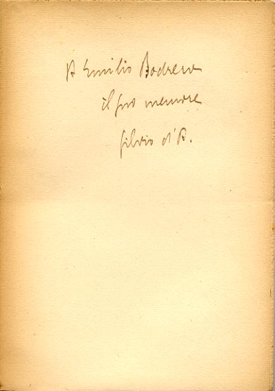 Dedica manoscritta dell'autore: A Emilio Bodrero / il suo memore / Silvio D'A.