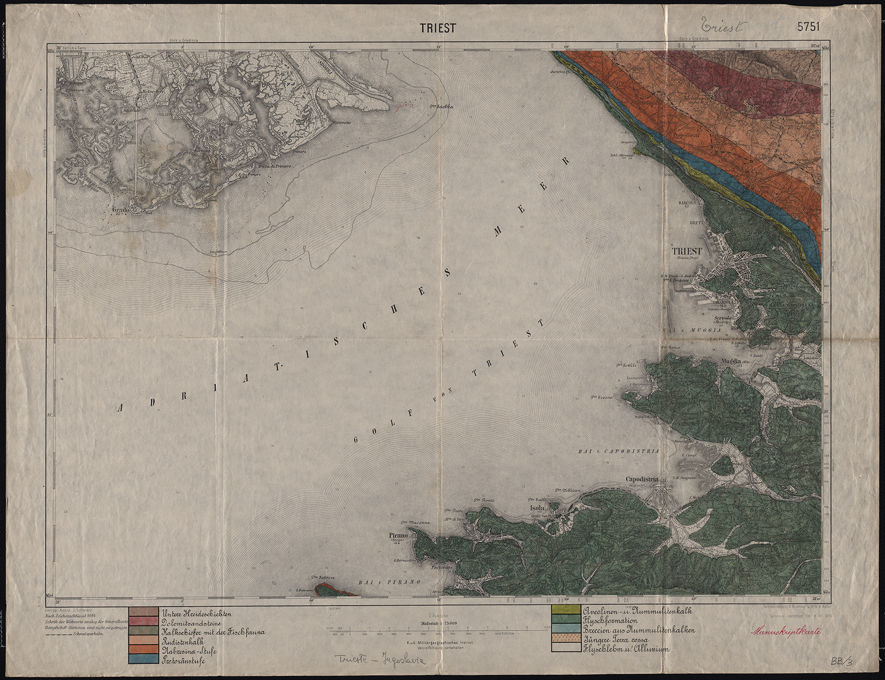 Triest. Geologische Specialkarte der im Reichsrathe vertretenen Königreiche und Länder der Österreichisch - Ungarischen Monarchie neu aufgenommen und herausgegeben durch die k. k. Geologische Reichsanstalt