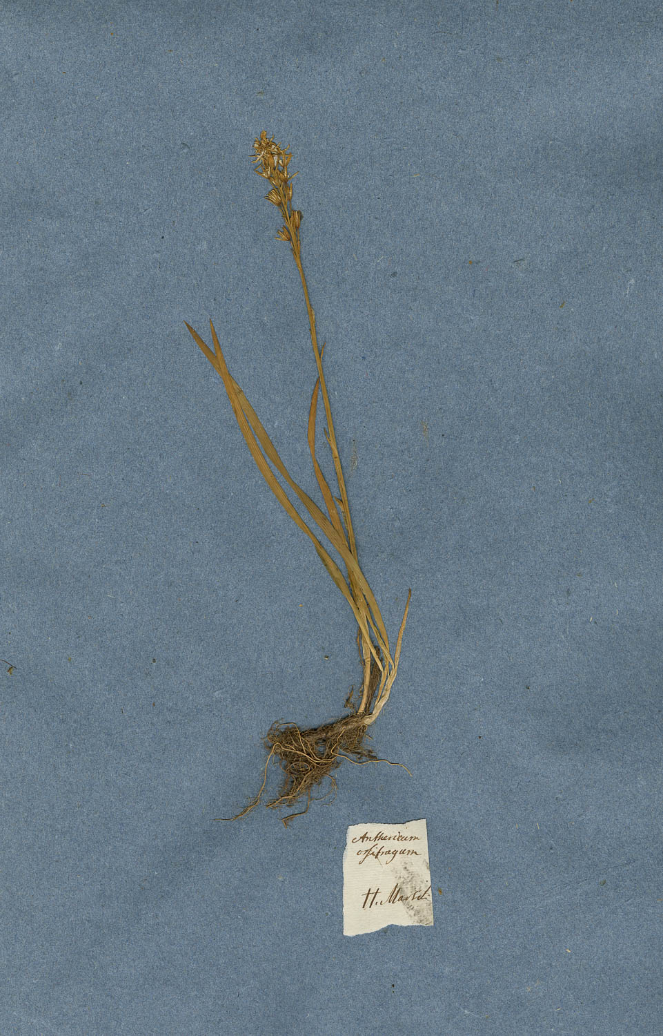 Foglio dell'erbario di Giovanni Marsili con cartellino manoscritto: Anthericum ossifragum
