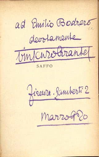 Dedica manoscritta del traduttore: ad Emilio Bodrero / devotamente / Vincenzo Errante / Firenze. Lamberti 2 / Marrozzo.