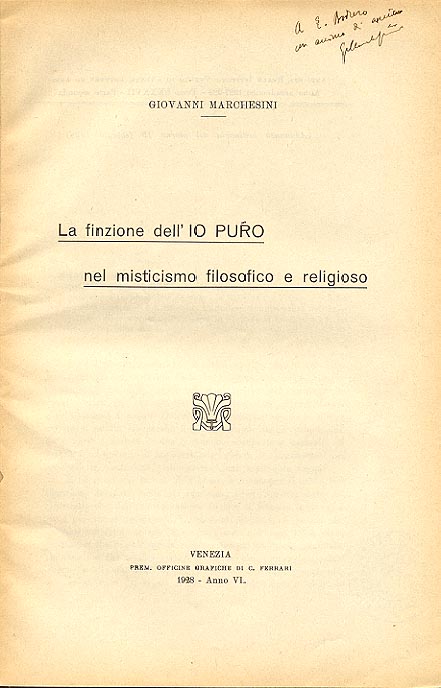 La finzione dell'io puro nel misticismo filosofico e religioso / Giovanni Marchesini. - Venezia : Prem. officine grafiche C. Ferrari, 1928