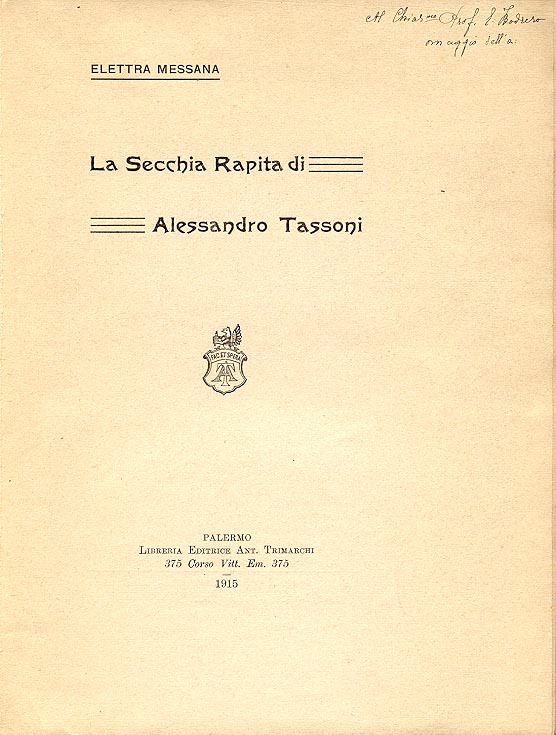 La Secchia rapita di Alessandro Tassoni / Elettra Messana. - Palermo : A. Trimarchi, 1915