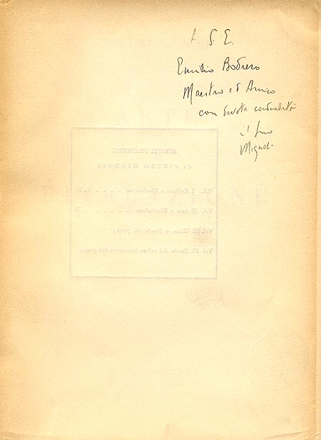 Dedica manoscritta dell'autore: A S. E. / Emilio Bodrero / Maestro ed Amico / con devota cordialita / il suo / Mignosi