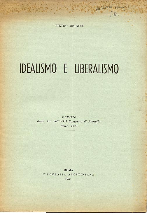 Idealismo e liberalismo / Pietro Mignosi. - Roma : Tipografia agostiniana, 1934