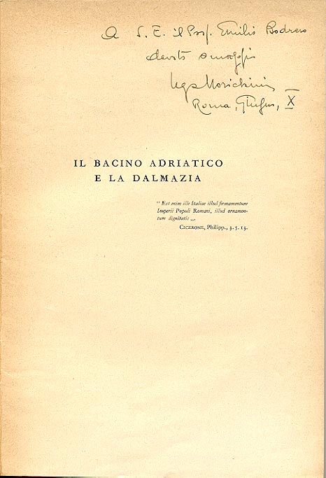 Dedica manoscritta dell'autore: A S. E. il Prof. Emilio Bodrero / devoto omaggio / Ugo Morichini / Roma, Giugno, X