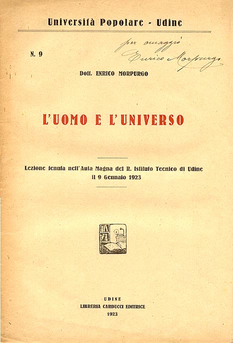 L'uomo e l'universo : lezione tenuta nell'aula magna del R. istituto tecnico di Udine il 9 gennaio 1923 / Enrico Morpurgo. - Udine : Libreria Carducci, 1923