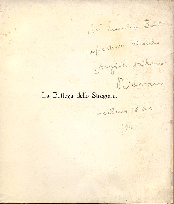 Dedica manoscritta dell'autore: Ad Emilio Bodrero / affettuoso ricordo / Angiolo Silvio / Novaro / Milano 18 dic. / 1911